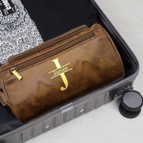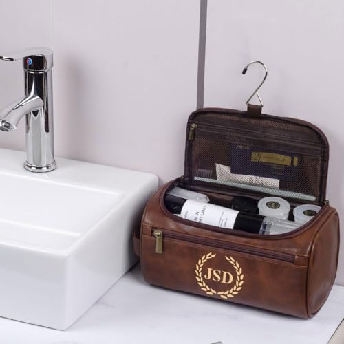 HOT ! Men's Customizable Hanging Toiletry bag for man Dopp Kit Bag for Travel, Wedding Groomsmen Gifts, Father's Day,Christmas Birthday Presents for Dad, Husband, Grandpa,Lover (Brown)