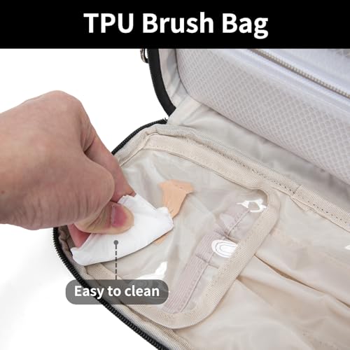 • Smart Multi - Compartment Design : Two independent storage zones: One side with a TPU brush bag (easy - clean!) and zippered pocket for makeup brushes, eyeshadows, lipsticks; the other with a mesh pocket and open slot for larger items like lotions or palettes. Organize by category for quick visibility and access—no more tangled messes!