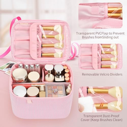 HOT ! OCHEAL Makeup Bag Large Capacity Travel Make up Pouch for Cosmetics, Vertical Storage with Divider Toiletry Bag for Skincare Organization-Pink