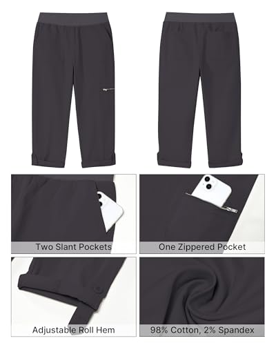 GRAPENT Capri Cargo Pants for Women High Waisted Pull On Elastic Waist Stretch Twill Fold Hem Capris Pants with Pockets 6