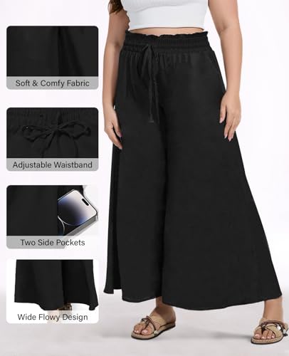 • Flowy Fabric: Made of high-quality fabric, the plus size wide leg pants woman are so lightweight, breathable and comfortable. These plus size wide leg flowy pants for women will bring you a flowy and elegant appearance, while ensuring comfort and ease of movement. In order to look better, it is recommended to wear underwear that matches your skin tone