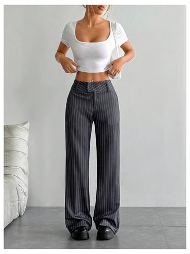 Floerns Women's Striped Print High Waisted Dress Pants Straight Leg Work Suit Pants 6