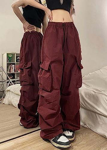 TSMNZMU Womens Baggy Cargo Pants Casual Hiking Trousers Loose Fit Parachute Pants Y2K Hight Waist Mutil Pocket Trousers 5