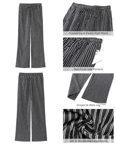 MINTLIMIT Women Striped Linen Pants Drawstring Casual Wide Leg Elastic Waist Trousers Loose Summer Lounge Pants with Pockets 3