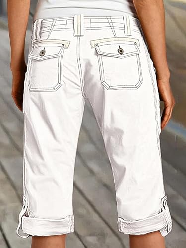Flamingals Bermuda Shorts for Women Mid Rise Roll Hem Cargo Capris Summer Casual with Flap Pocket 5