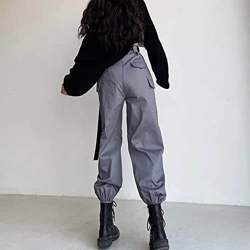 • * [pants with straps Design features]: Our trousers use zipper and button design, and a belt that can be adjusted to size, wearing without bondage, very suitable for your curves. The trouser legs have a retro large pocket design, and this hip-hop style makes you stylish and individual. Vintage wide-leg pants show off your body curves, sexy and cute.