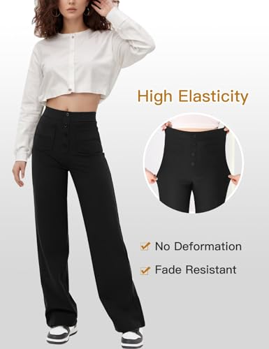 • [Unique Design]: Flexipants are a high-waisted design with four decorative buttons, two pockets on the front and back for easy storage, elastic waistband. The pockets give the pants a unique detail while still looking professional enough for work. Straight leg designs for that slim-looking, elongated figure. Work pants women, bloomydove flexipants, full length.
