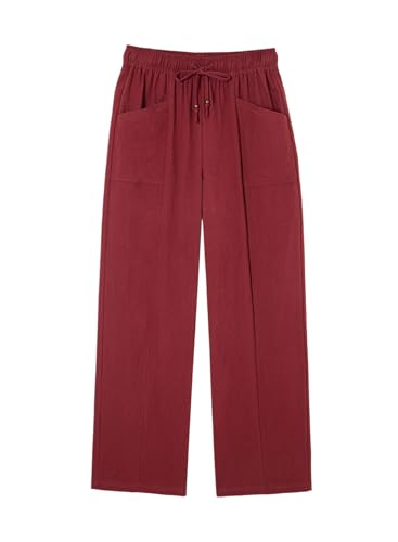 Acelitt Womens Cotton Linen Palazzo Pants Drawstring Elastic Waist Casual Wide Leg Trousers with Pockets 7