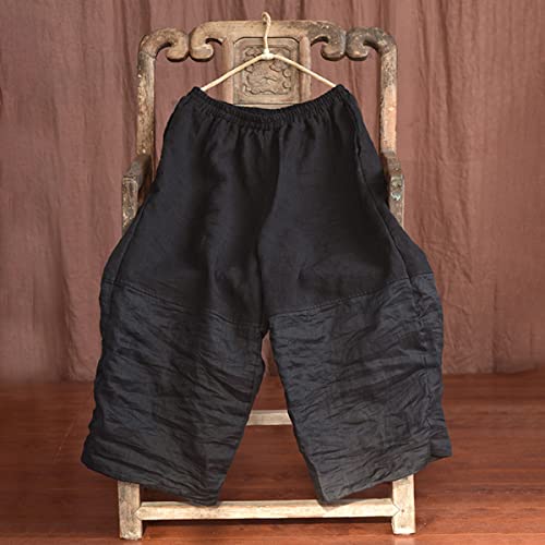 More information about NFYM Women Linen Wide Leg Cropped Pants Patchwork Elastic Waist Casual Summer Sun Protection Loose Thin Trousers