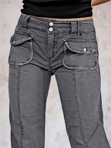 Flamingals Cargo Pants for Women Mid Rise Double Botton Y2K Casual Straight Leg Pants with Flap Pockets 5