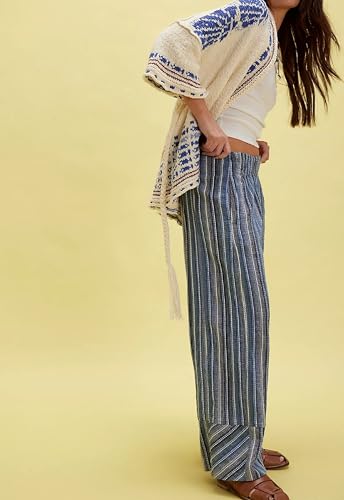 HOT ! Juakoso Women Striped Wide Leg Pants Loose Elastic Waist Lounge Pants Boho Flowy Straight Leg Casual Trousers with Pockets