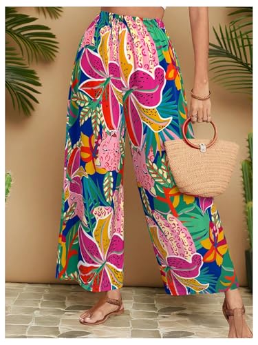 HOT ! Floerns Women's Plus Size Floral Wide Leg Palazzo Pants Lounge Boho Beach Trousers