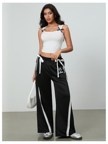 Verdusa Women's Bow Lace Y2k Sweatpants Straight Leg Casual Long Pants with Pockets Spring Fall Clothes 2