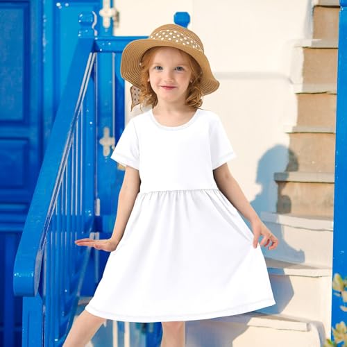 Yuiboo White Color Girls Summer Dresses Short Sleeve Casual Loose Ruffle Dresses for Little Girls 4
