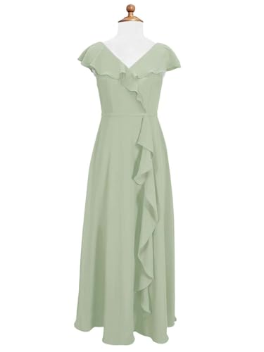 • Elegant Design: This chiffon junior bridesmaid dress features beautiful ruffles along her V-neckline and into the bodice and A-line skirt, delicate flutter sleeves, and a cascading leg slit. Its elegant and versatile design is perfect for junior bridesmaid dresses, flower girl dresses for weddings, or girls’ special occasion dresses