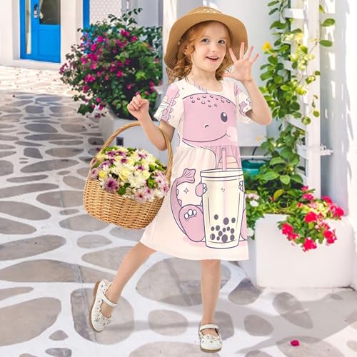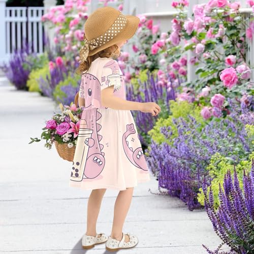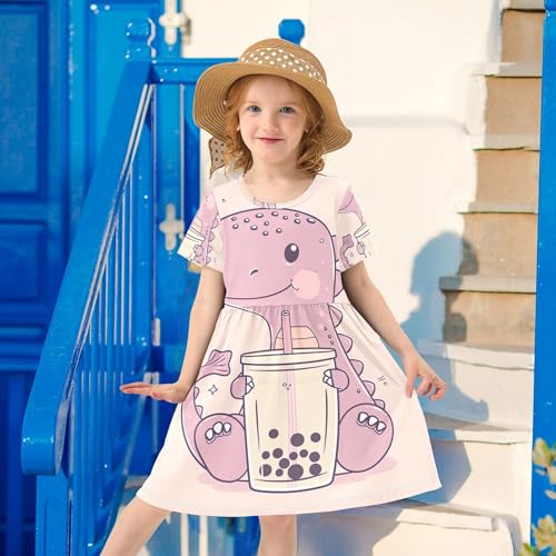 Toddler Girls' Dresses 2t Dinosaur Holding Bubble Tea Summer Short Kids Western Dress Children 4