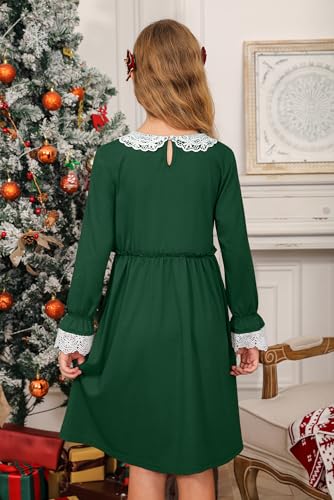 BesserBay Girl's Lace Peter Pan Collar Elastic Waist Long Sleeve Swing Dress 1-10 Years 6