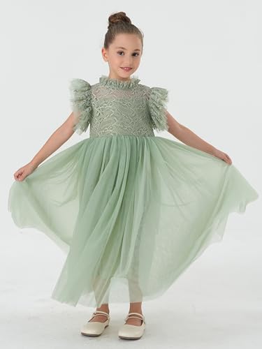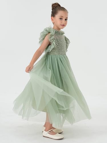 2Bunnies Girl Iris Floral Lace High Neck Ruffled Flutter Sleeve A-Line Tutu Tulle Party Flower Girl Dress 5