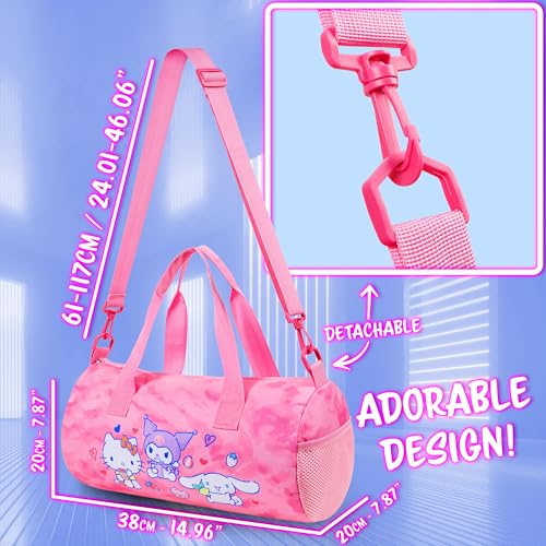 HOT ! Hello Kitty Sports Duffel Bag - Pink, Cartoon Pattern - 14.9x7.8x7.8 inches - Adjustable Shoulder Strap - Zipper Closure - Carrying Handles - Perfect for Girls, Teens, or Women