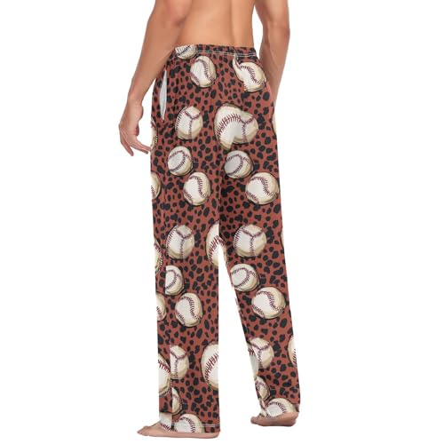 ALAZA Baseballs Leopard Spots Men’s Pajama Pants Soft Long Sleep Pants Lounge Pajama Bottoms with Pockets 1