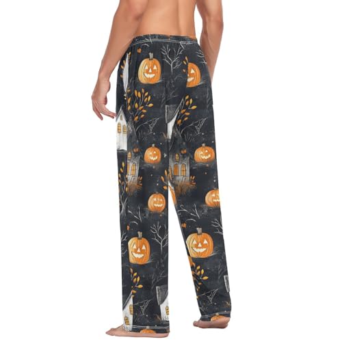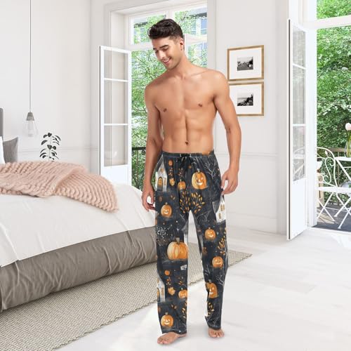 Mens Pajama Pants Halloween Castle Pumpkin Soft Lounge Sleep Pj Bottoms with Drawstring Pockets 6