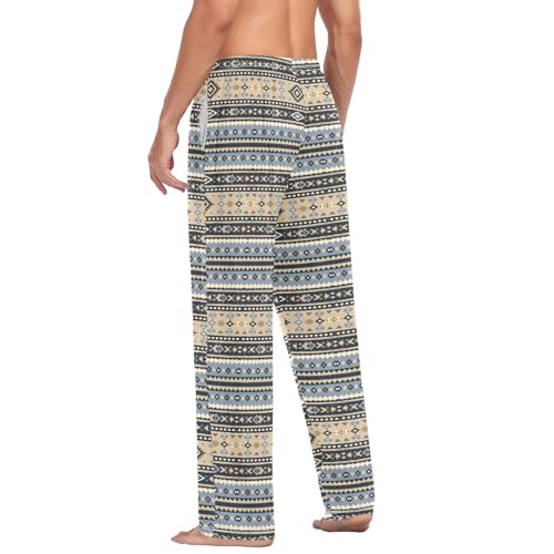 Mens Cotton Pajama Pants Sleep Lounge Pj Bottoms Sleepwear with Pockets Drawstring S Yellow and Blue Aztec 1