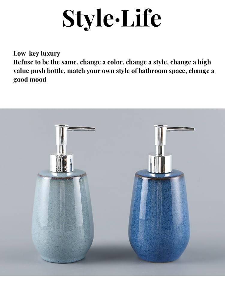 • Stylish Liquid Soap Dispenser: The hand soap dispenser for bathroom is functional and decorative,the/modern,farmhouse,boho,modern,contemporary,simple,retro,Ceramic kiln-changed/styles liquid soap dispenser for bathroom countertop,effortlessly creates an graceful and aesthetics atmosphere for your bathroom,hotel,guest room etc.