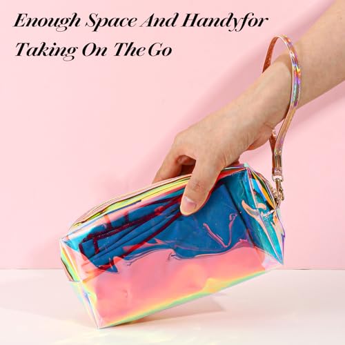 • 【Waterproof and Easy to Clean Hand Strap】This holographic clear make up bag is equipped with a hand strap for convenient travel, and the waterproof function prevents items from getting wet. Just wipe cosmetics bag with a soft cloth and water to keep makeup pouches clean. There is enough space to meet your daily cosmetic storage or travel use.