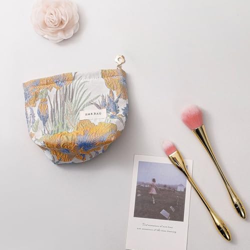 HOT ! French Floral Canvas Makeup Pouch - 17x14cm/6.7''x5.51'' Handheld Clutch with Zipper, Multi-Use Cosmetic & Coin Organizer, Small