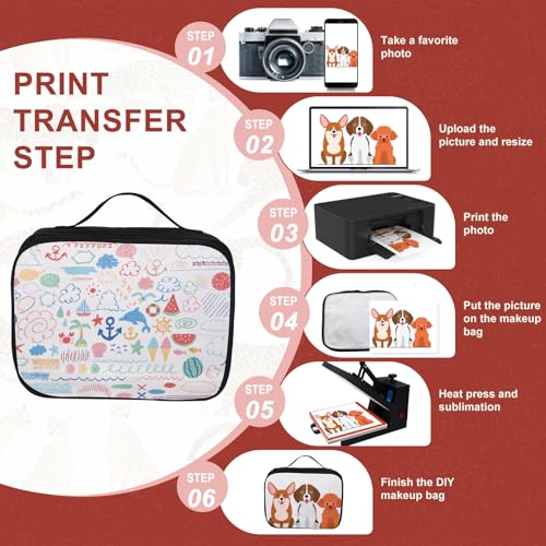 • 【Detachable design】: Sublimation blanks cosmetic bag adopts detachable heat transfer zipper moving cover design, convenient heat transfer work. The temperature of sublimation printing is 170-190 degrees Celsius, the use time is 40-60 seconds, and the zipper will not melt during the heat transfer process