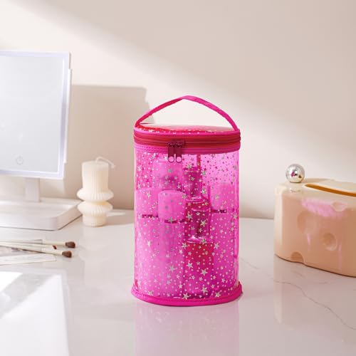 Clear Star Lotion Cylinder Bag for Toiletry,Waterproof PVC Sunscreen Travel Makeup Bag,Top Handle Cosmetic Bag Gift for Beach and Pool(01Hot Pink) 7