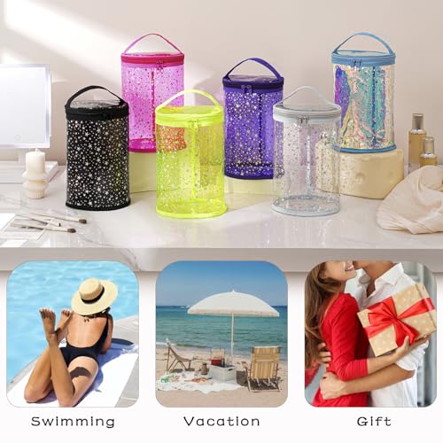 Clear Star Lotion Cylinder Bag for Toiletry,Waterproof PVC Sunscreen Travel Makeup Bag,Top Handle Cosmetic Bag Gift for Beach and Pool(01Hot Pink) 6