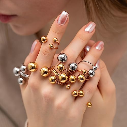 OIDIMS Geometric Balls Minimalist Wrap Open Ring for Women Fashion Ball Stainless Steel Eternity Statement Promise Knuckle Pinky Stacking Adjustable Rings Daughter Bff Birthday Christmas Gifts 6