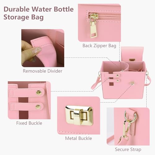 • 【PU LEATHER MATERIAL】 Crafted from friendly materials, this water bottle storage bag ensures durability and long-lasting use. The sturdy construction protects your water bottle from damage, while the secure closures keep your belongings safe.