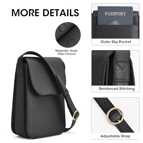 • SMALL Yet PRACTICAL: 12.7×6×19.5cm/5"×2.4"×7.7"(L*W*H), Weight:0.35kg/0.77lbs. This real leather phone bag fits up to 6.7" phone easily; The flap magnetic closure to keep your essentials safe and secure
