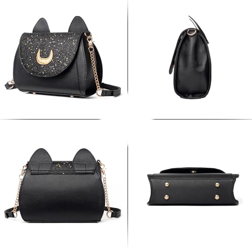 HOT ! Women Kawaii Handbag Cosplay Gothic Crossbody Cat and Moon Purse Sequin Satchel Shoulder Bag