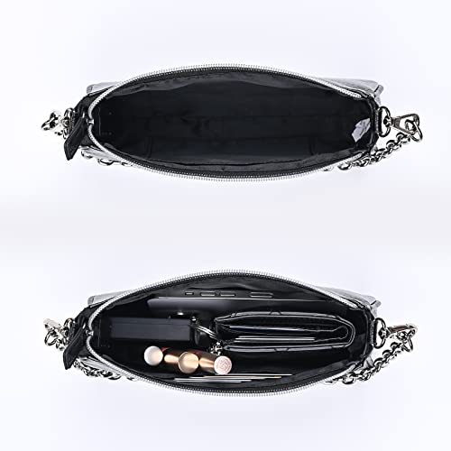 • Trendy design - This y2k purse offers a modern and chic look with snakeskin texture, silver-tone shoulder chain design, and zippered closure which can secure credit cards and cash. It is suitable for multiple occasions such cocktail party, travel, dating, shopping, office, and outdoor