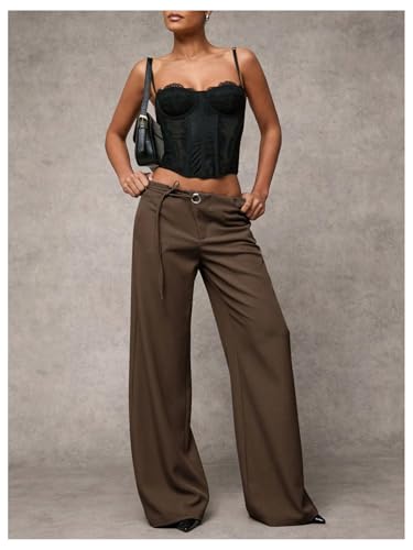 • Features: Trendy dress pants for women, low rise, wide leg, grommet eyelet, drawstring side, loose fit