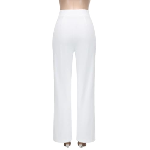 HOT ! White Pants Women Dressy, High Rise Straight Long Trousers, Women's Flare Pants, Classic Elegant Casual Work Pant (White, M)