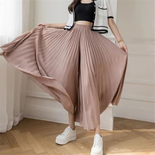 HOT ! Women Elegant Chiffon High Waist Wide Leg Pants Casual Korean Pleated Loose Trousers