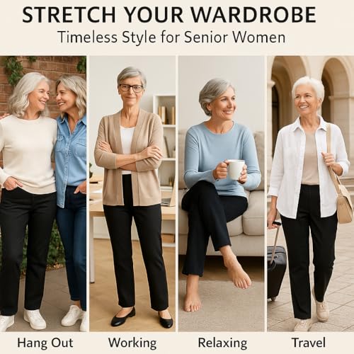 Linebalm Pants for Senior, Linebalm Perfect Drape High Rise Pull-On Stretch Pants Petite, Breathable and Soft 4