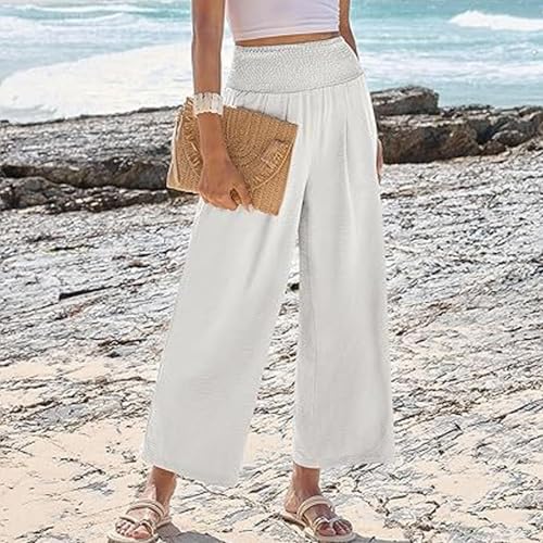 More information about Continentau Pants, Women's Smocked Waist Wide Leg Palazzo Pants, 2025 Summer Casual Wide Leg Loose Simple Pants