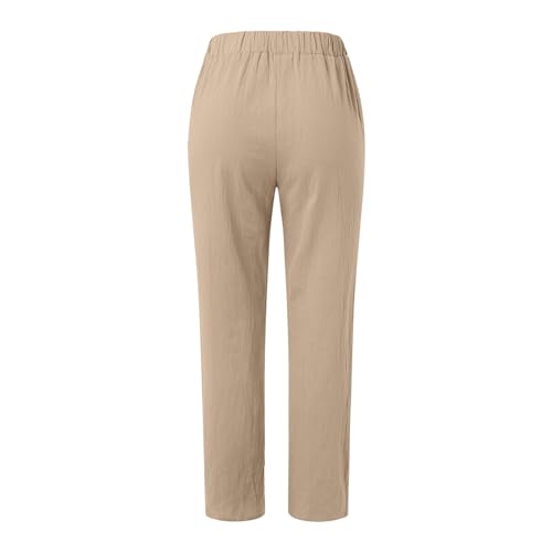 Women's Casual Pants Striped Side Button Elastic Waist Straight Leg Trendy Pants Baggy Lightweight Trousers with Pockets Striped Pants (Z06 Khaki,L) 4