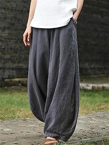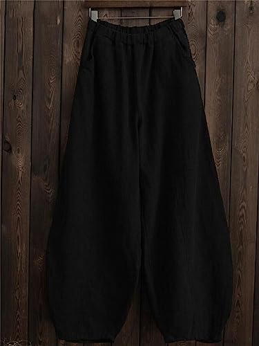 HOT ! Ladies Spring Summer Linen Solid Color Elastic Waist Pants