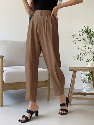 Cicy Bell Women Casual High Waisted Button Pencil Pants Work Office Straight Leg Dress Pants Fold Pleated Trousers 6