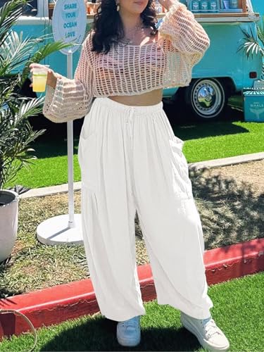 The Happy Wind Linen Pants, Women's Linen Wide Leg Casual Loose Drawstring Beach Palazzo Harem Pants with Pockets 6