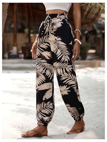Women's Boho Tropical Pants Drawstring Waist Harem Pants Summer Vacation Trousers 4