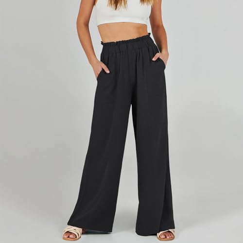 HOT ! Linen Pants Women 2025 Summer High Waisted Loose Wide Leg Pants Business Casual Work Pant Long Palazzo Pant