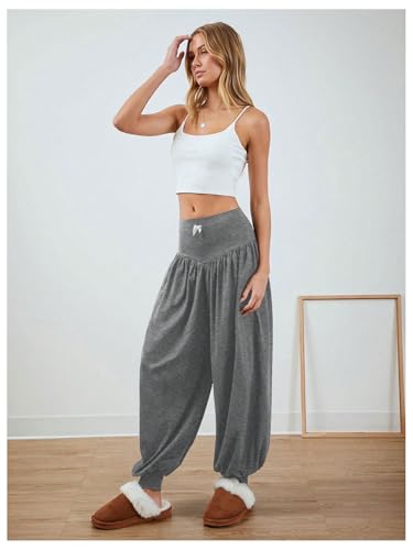 HOT ! MakeMeChic Women's Bow Knot Elastic Waist Pants Loose Fit Plain Summer Baggy Trousers