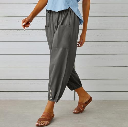 Women's Casual Lantern Harem Loose Capris Pants 2025 Summer Loose Fit Style Flax Ankle Trousers with Pockets 2